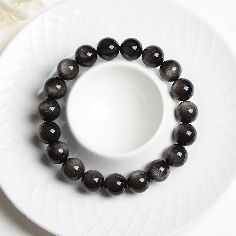 Natural silver obsidian and black obsidian bracelets for women and men as gifts for couples in their zodiac year