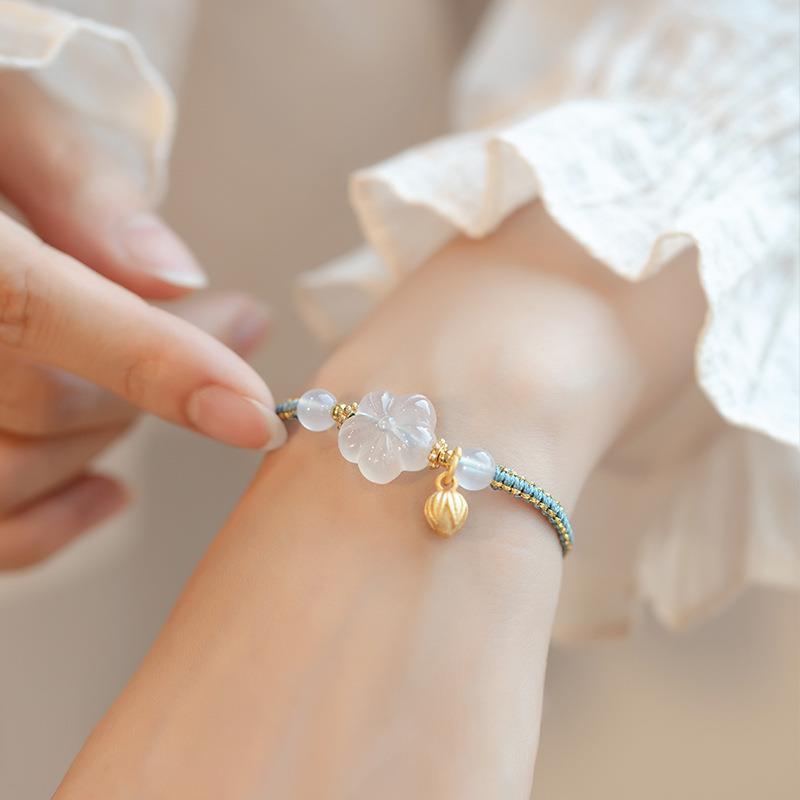 The design sense white agate plum blossom niche bracelet for women, Chinese style adjustable woven bracelet gift chalcedony retro style