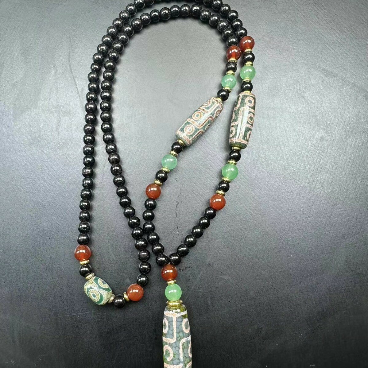 Wholesale of natural agate, Tibetan-style green ghost sweater chain bottom beads, nine-eyed sky beads pendant, Bodhi Chinese style